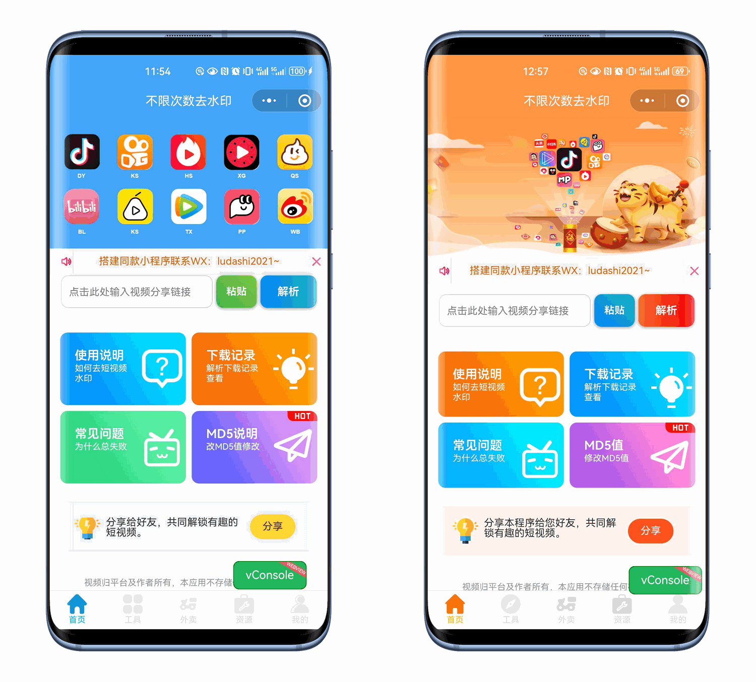 最新去水印小程序系统 前端+后端全套源码 多套模版 免授权