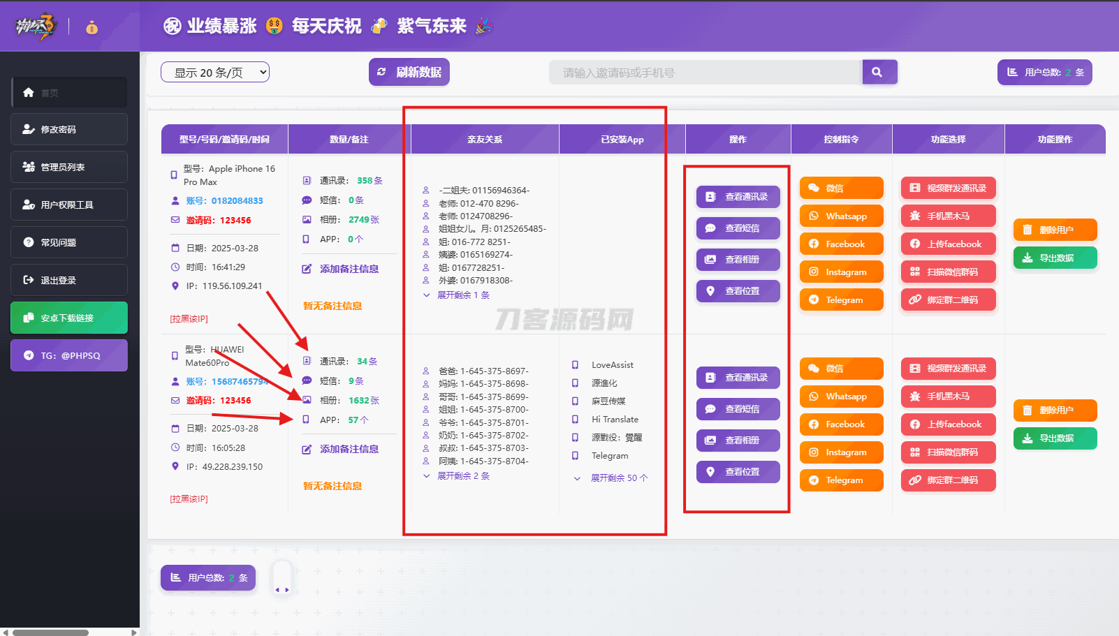 最新双端获取TXL、相册、短信、定位、已安装APP信息系统源码 全开源