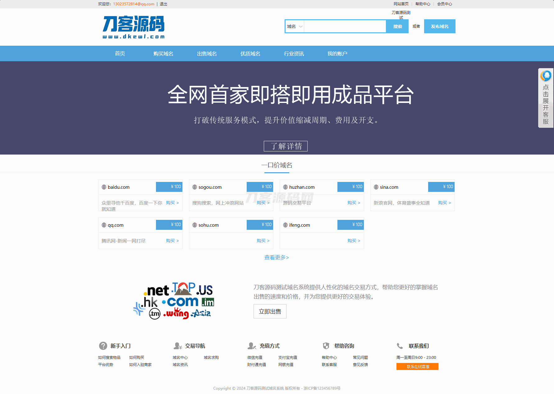 4爷免费源码网 » 最新域名出售交易平台系统源码 修复版 附教程