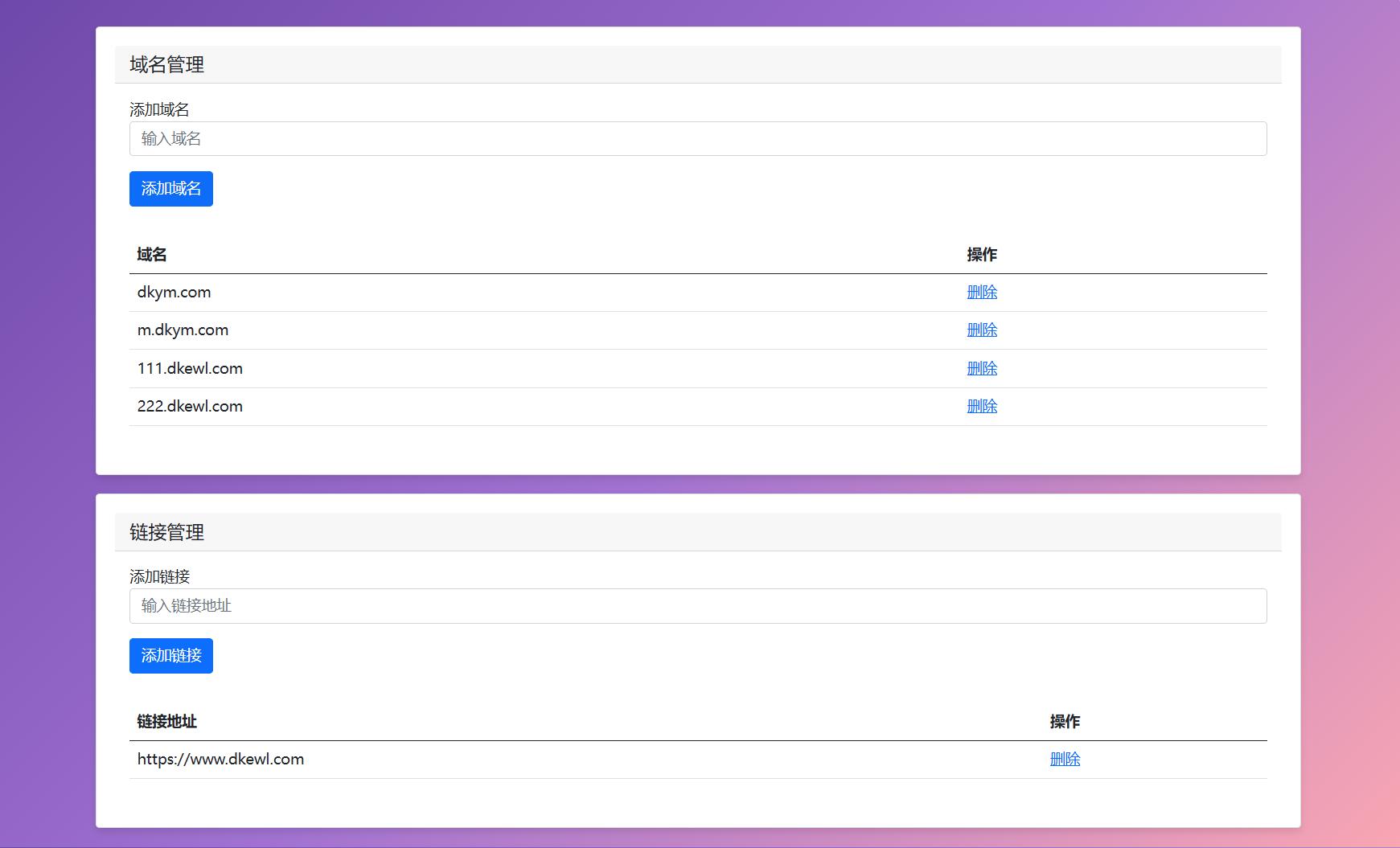 链接管理:添加需要跳转显示的域名