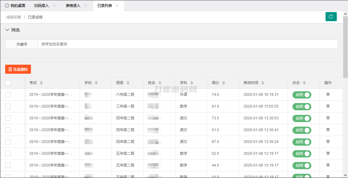 在线录入和修改成绩、表格录入成绩、扫码枪录入成绩