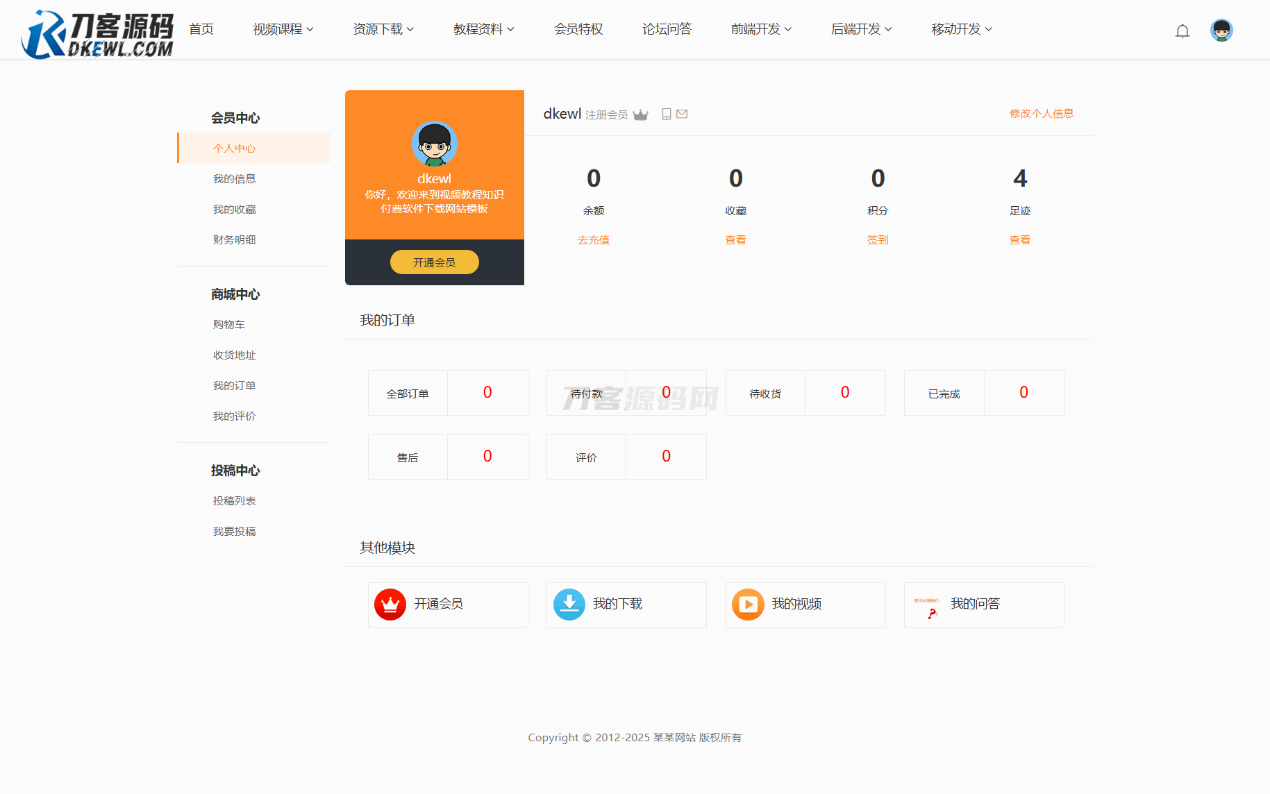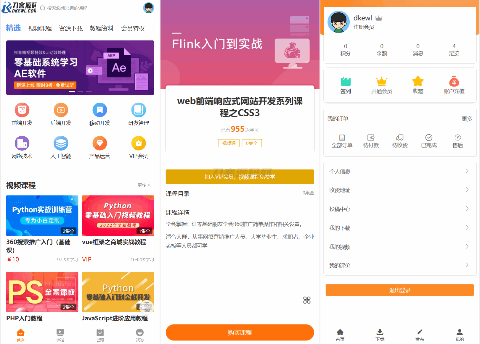 4爷免费源码网 » 最新知识付费系统网站源码 PC+H5双端 适用视频教程 网课系统 付费下载等