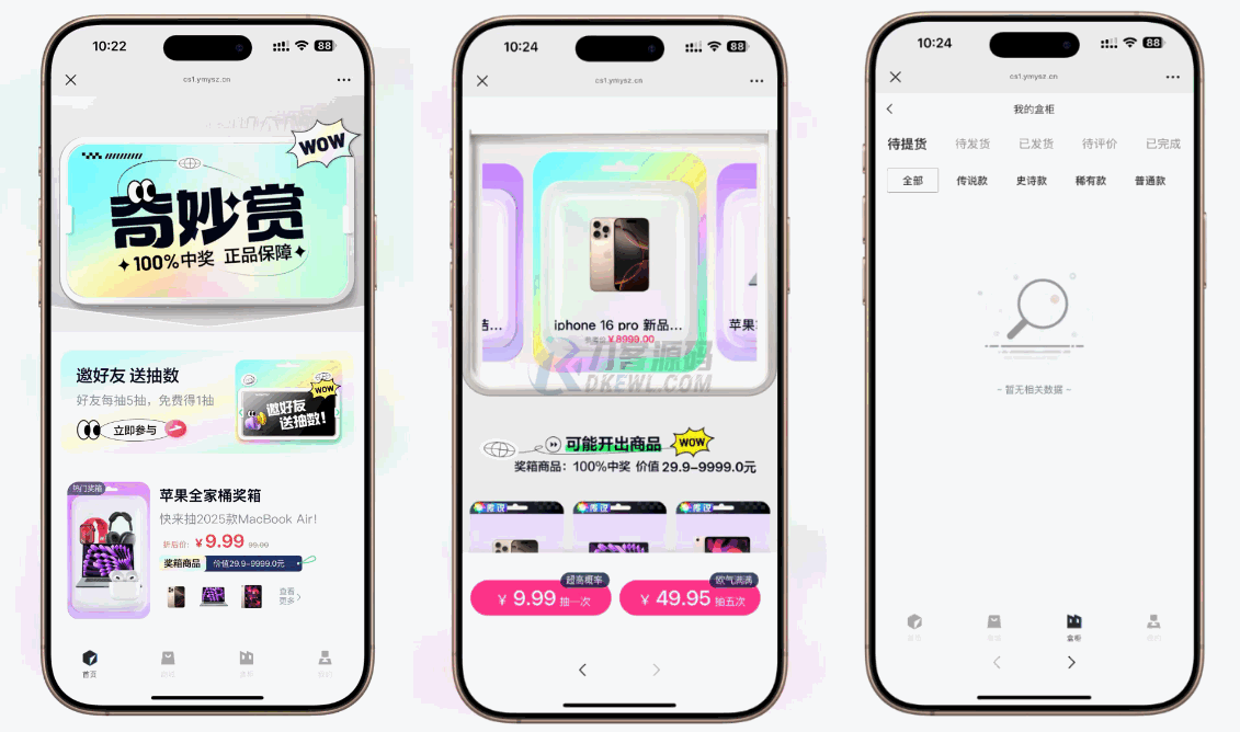 3.订单管理: 清晰查看用户抽盒记录、支付状态、中奖信息。