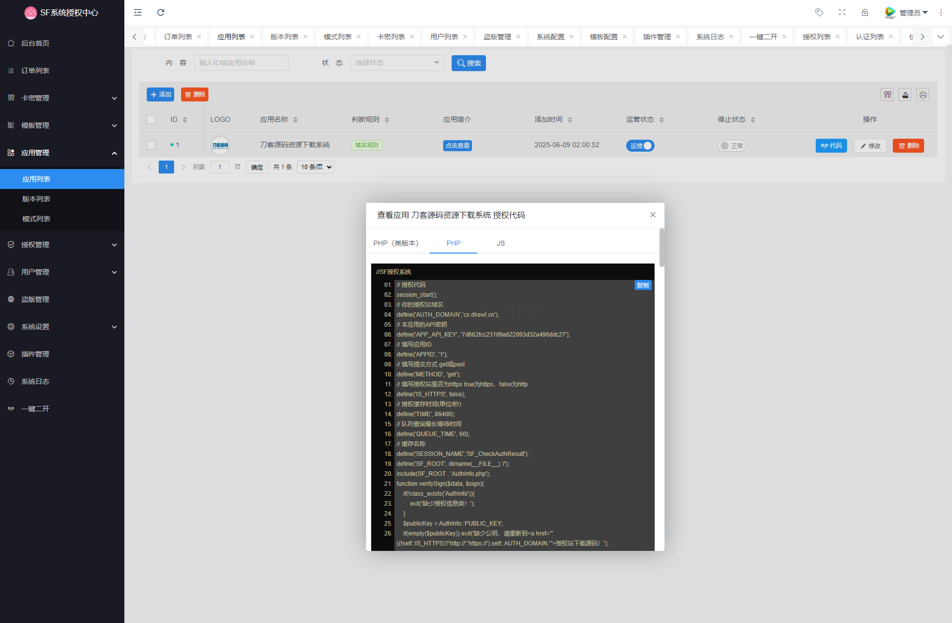4爷免费源码网 » 最新SF授权系统源码 全开源无加密v5.2版本