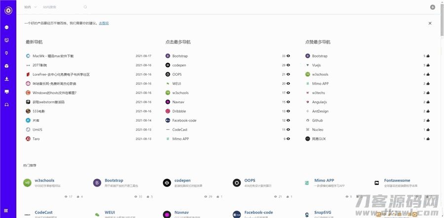 4爷免费源码网 » 极客猿网址导航源码V3.0开源版_带后台