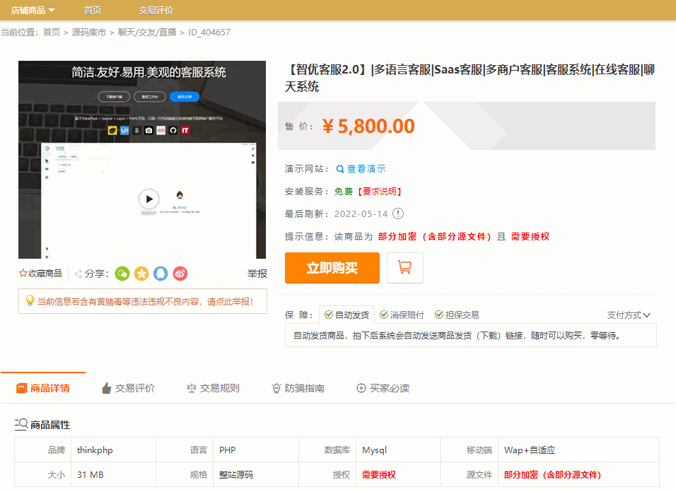 某站价值5800元的【智优客服2.0】|多语言客服|Saas客服|多商户客服|客服系统|在线客服|聊天系统