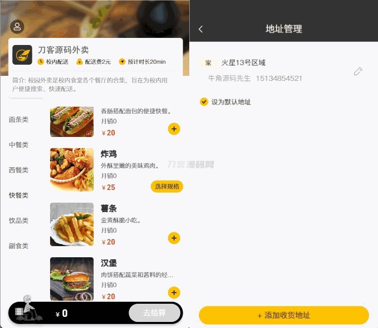 4爷免费源码网 » 校园点餐订餐外卖跑腿Java源码
