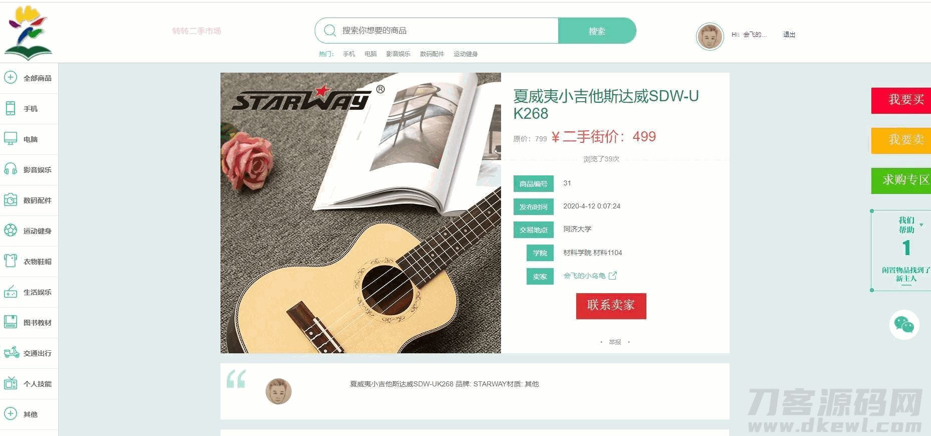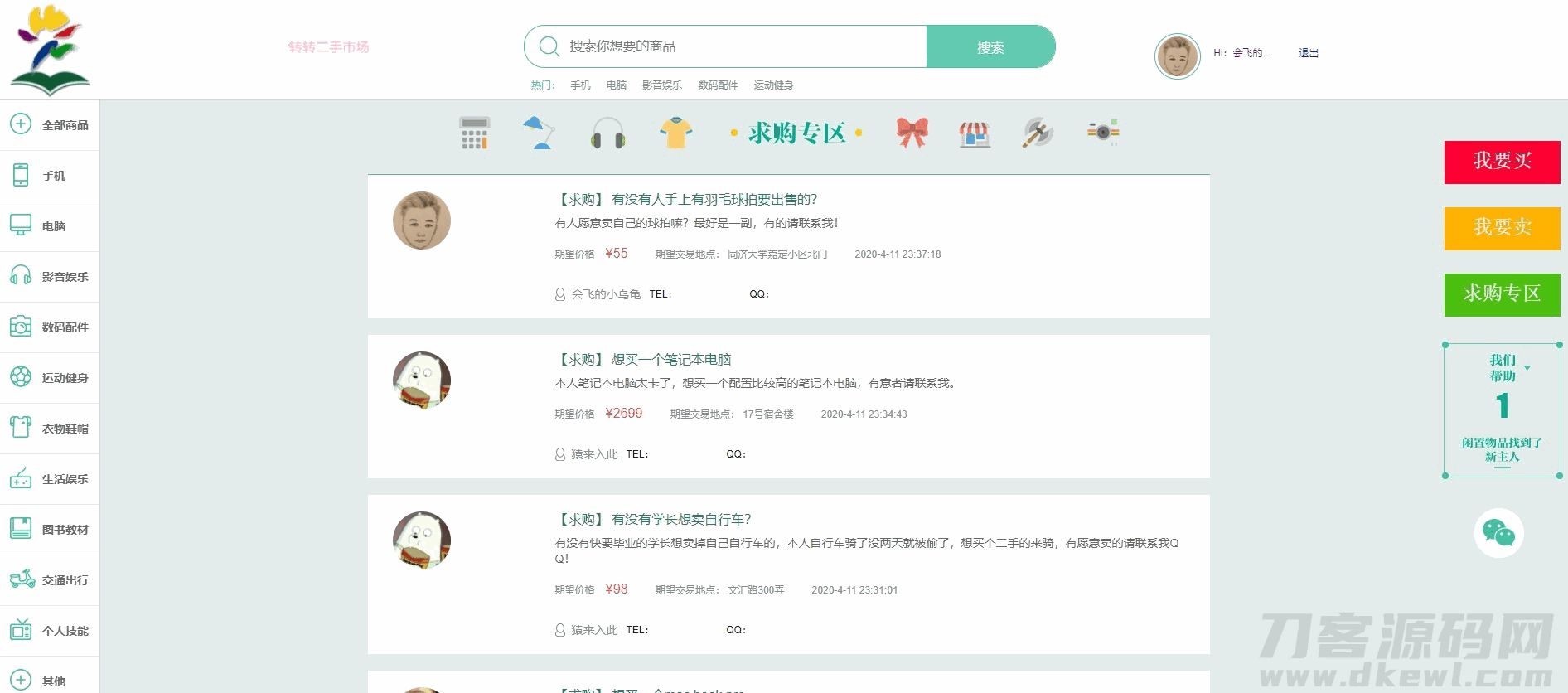4爷免费源码网 » 校园转转二手市场源码/Java二手交易市场整站源码