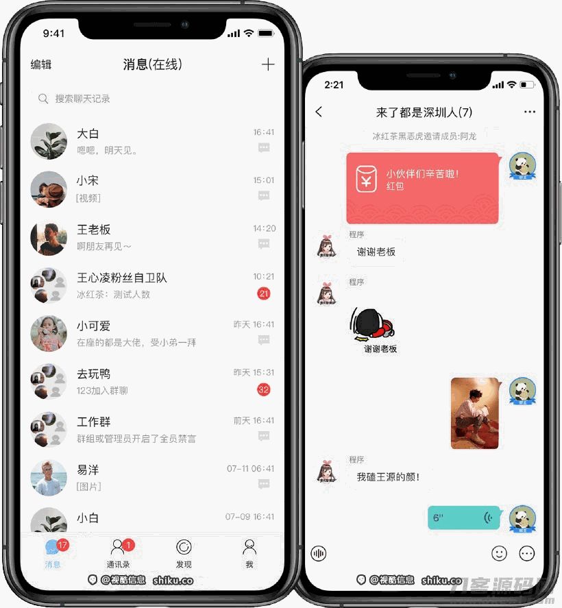 4爷免费源码网 » 正版源码IM即时通讯原生APP高仿微信 价值9800