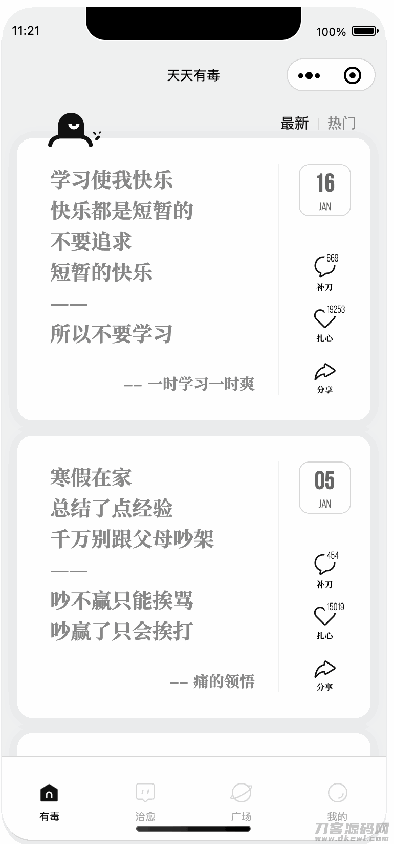 4爷免费源码网 » 毒鸡汤文案类小程序源码分享