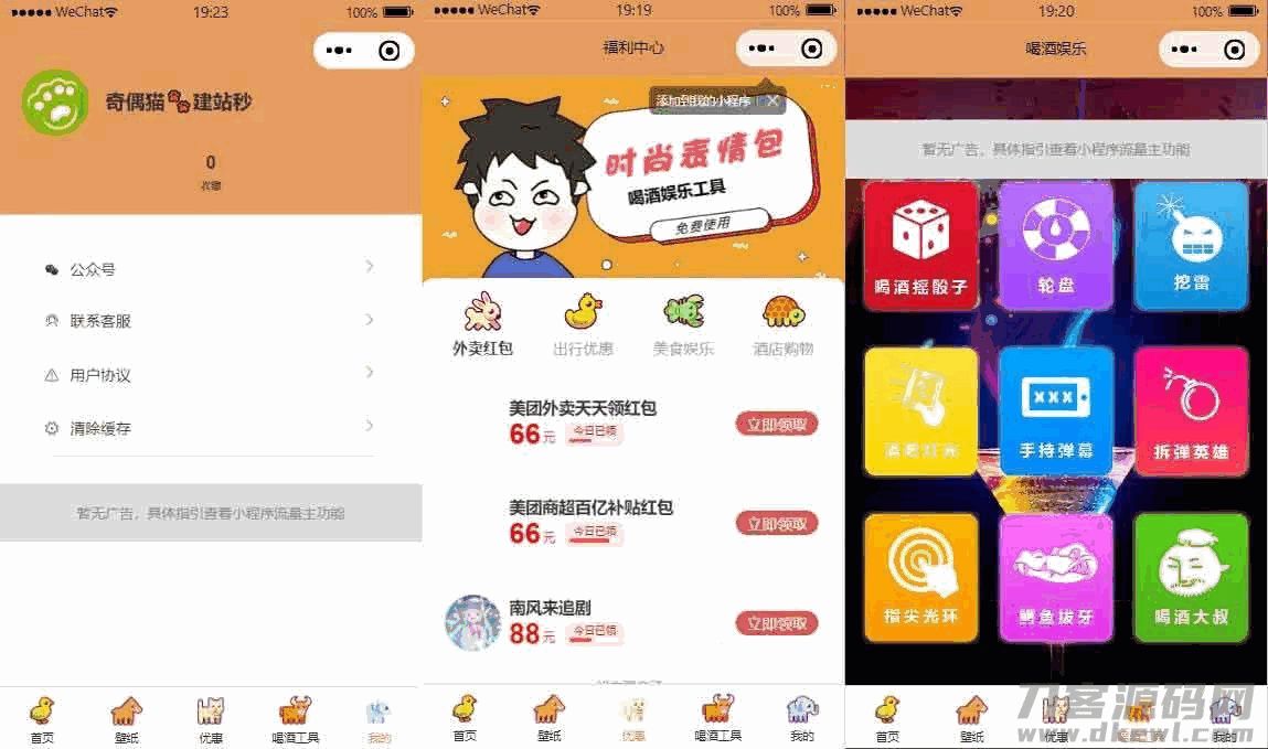 流量主系列|独立表情包壁纸喝酒神器功能微信小程序源码