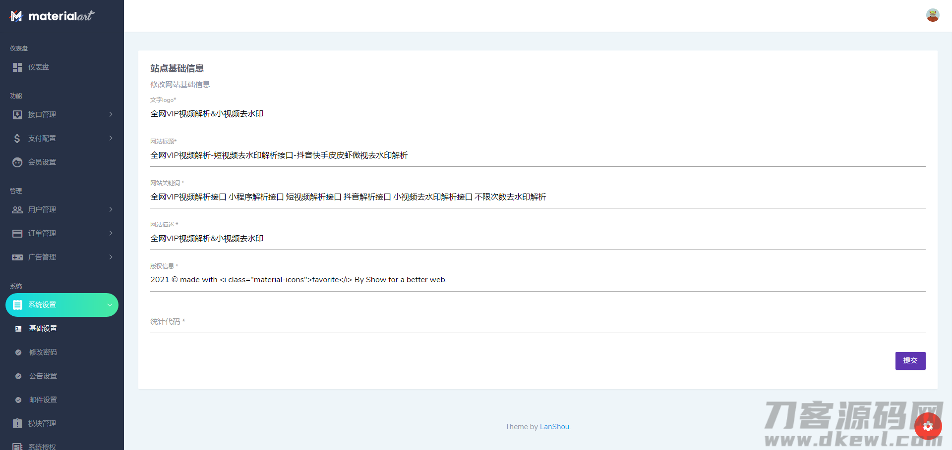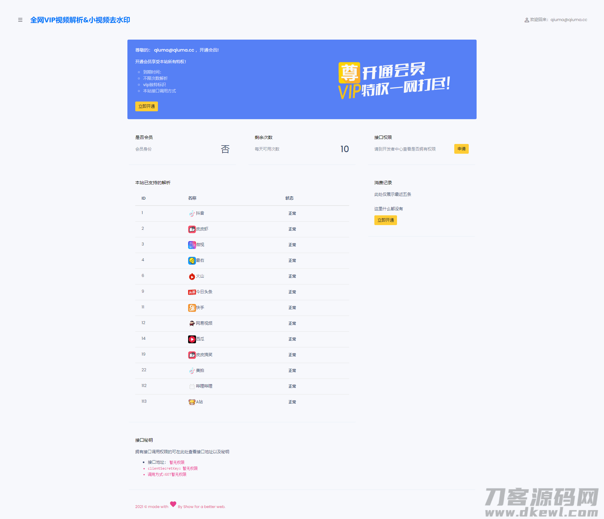 4爷免费源码网 » 短视频去水印接口支持全网解析源码/自定义API接口/多种支付