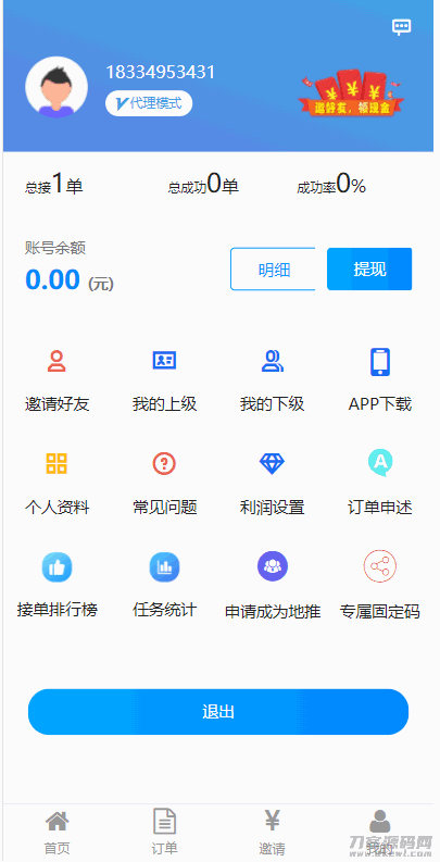 2.4下单端具备邀请功能,邀请下级成功发任务后,返任务利润比例给上级下单员。
