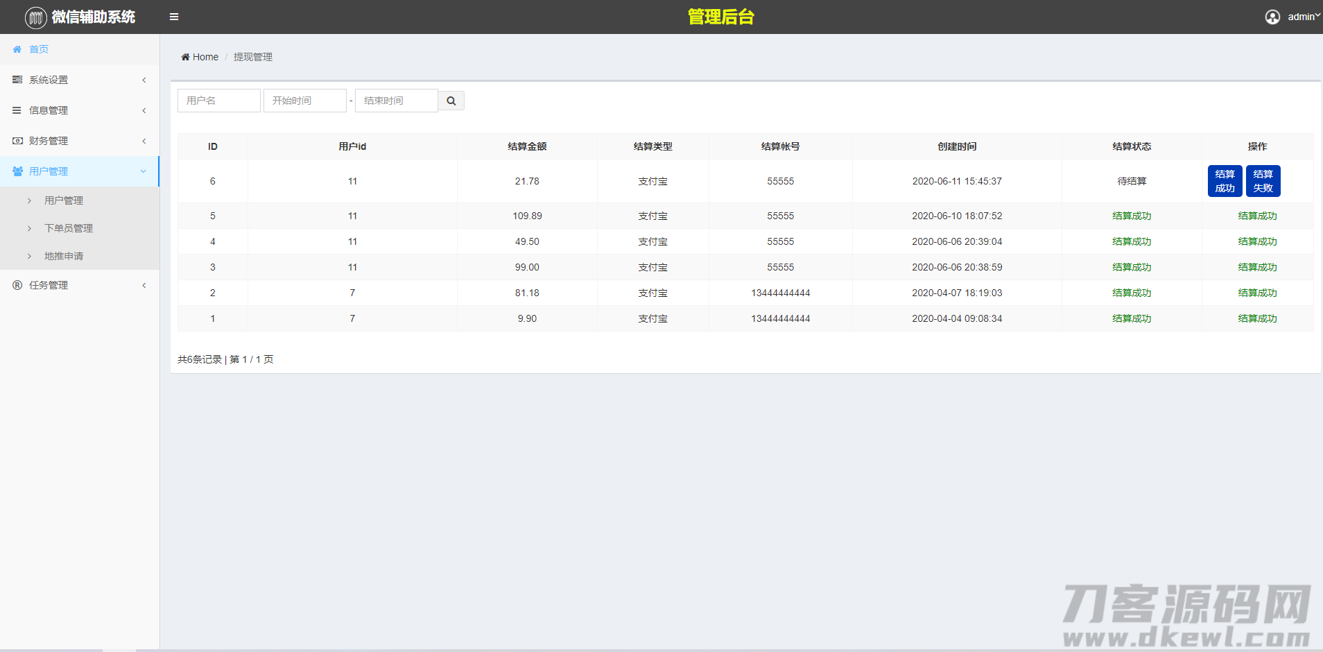 3.3 提现处理+用户明细功能