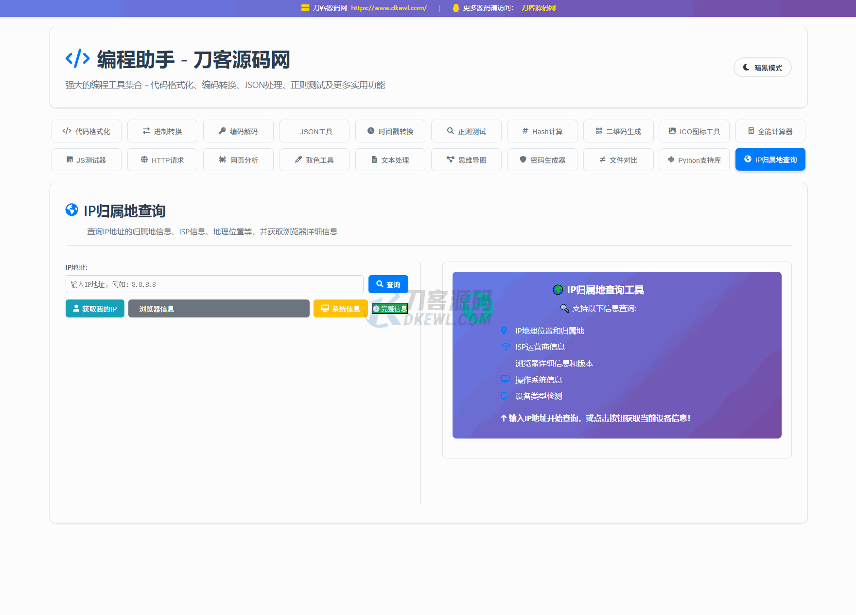 站长在线工具箱源码/编程助手源码/WEB工具箱 带暗黑模式 亲测可用 附完整教程
