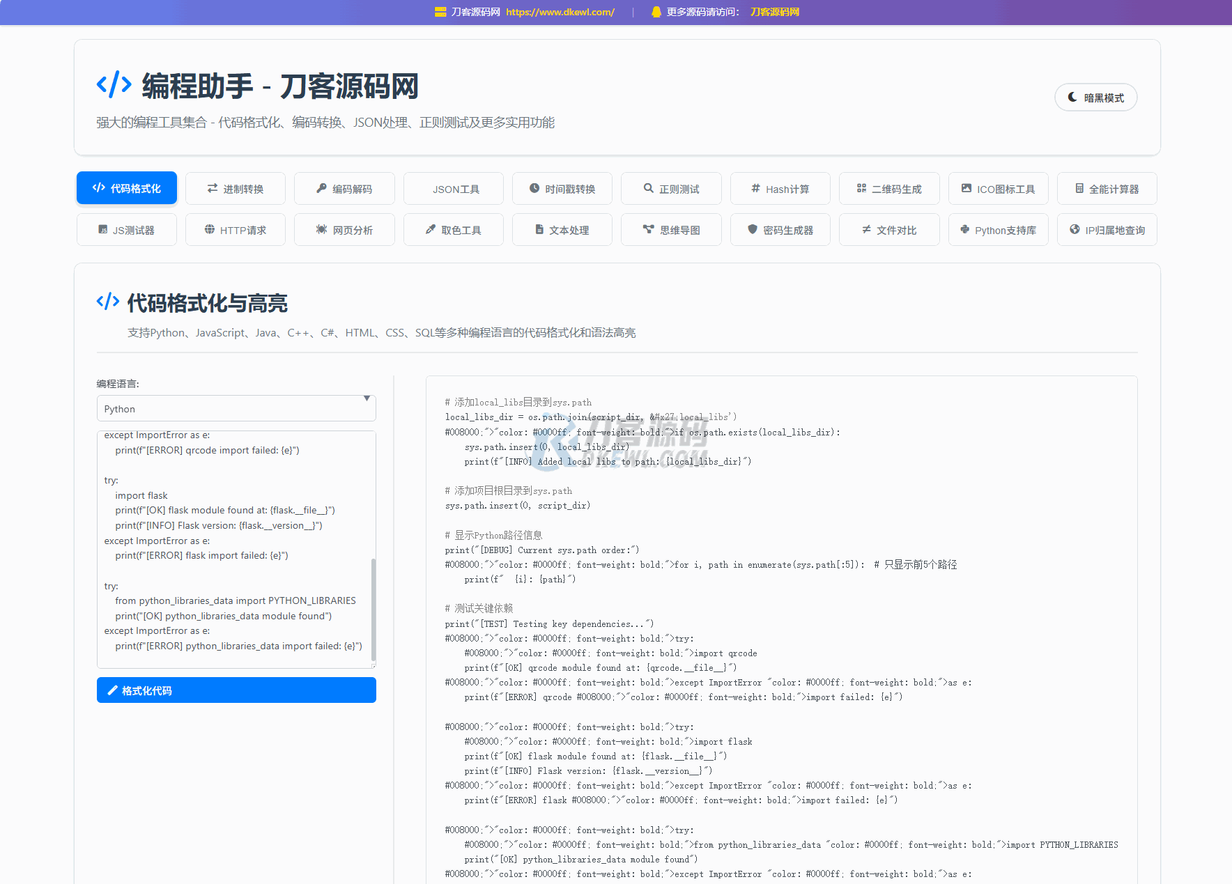 – **多语言代码格式化** – 支持Python、JavaScript、HTML、CSS等主流语言