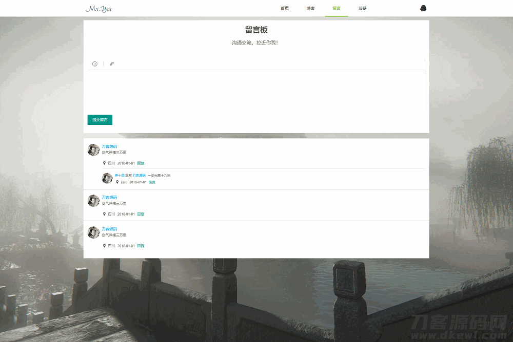 4爷免费源码网 » 简洁大气好看的个人博客模板HTML源码