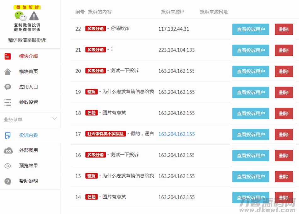 2、后台可以看到头像和昵称,收集到底是哪些人在投诉,可以对这类人群做特殊化处理。