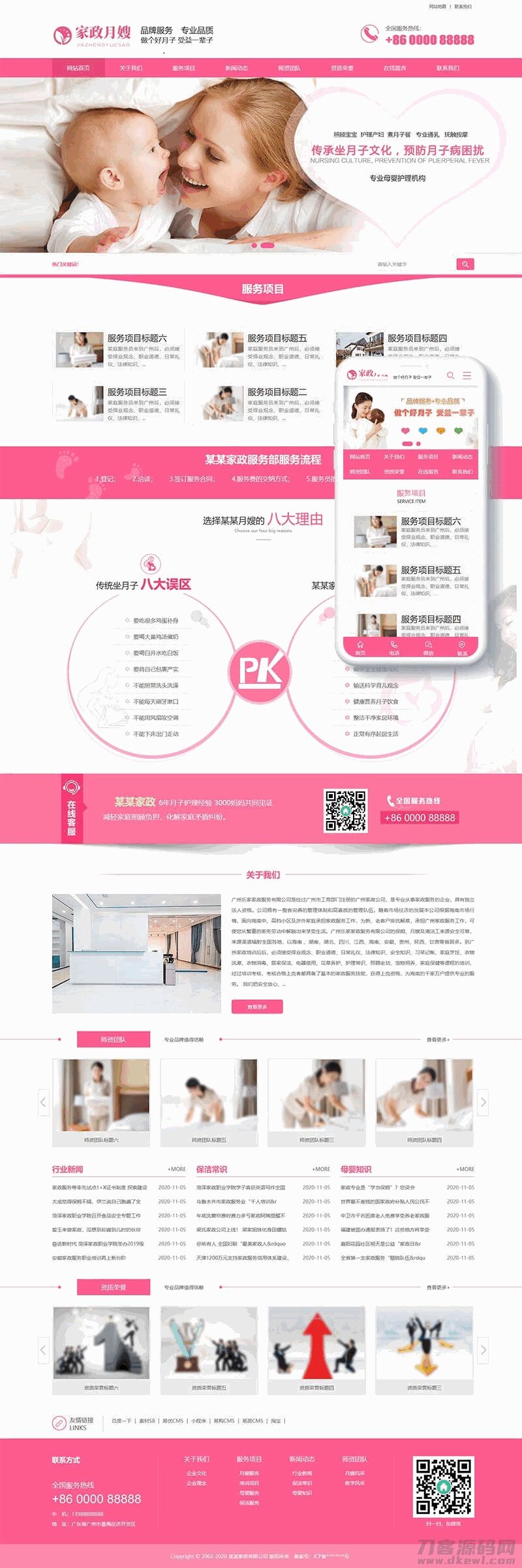 织梦粉红色大气家政月嫂保姆服务企业网站模板 带手机版