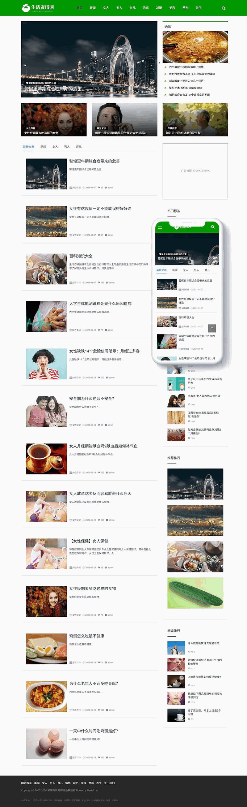 4爷免费源码网 » 织梦绿色响应式美容养生新闻资讯博客网站模板 自适应手机端