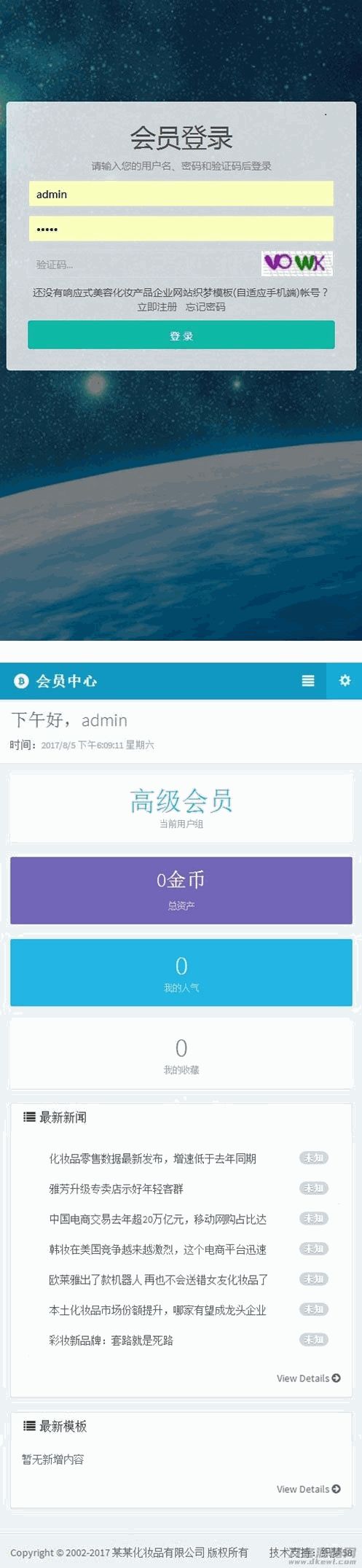 织梦高端大气响应式会员中心模板 自适应手机端