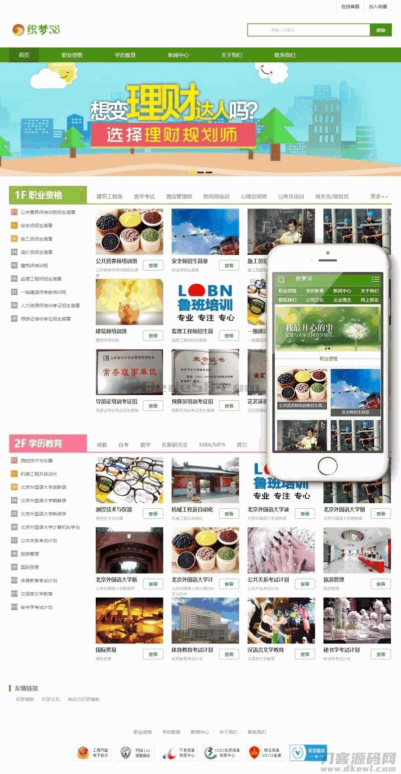 4爷免费源码网 » 织梦dedecms绿色风格资格证书学校培训机构网站模板 带手机版