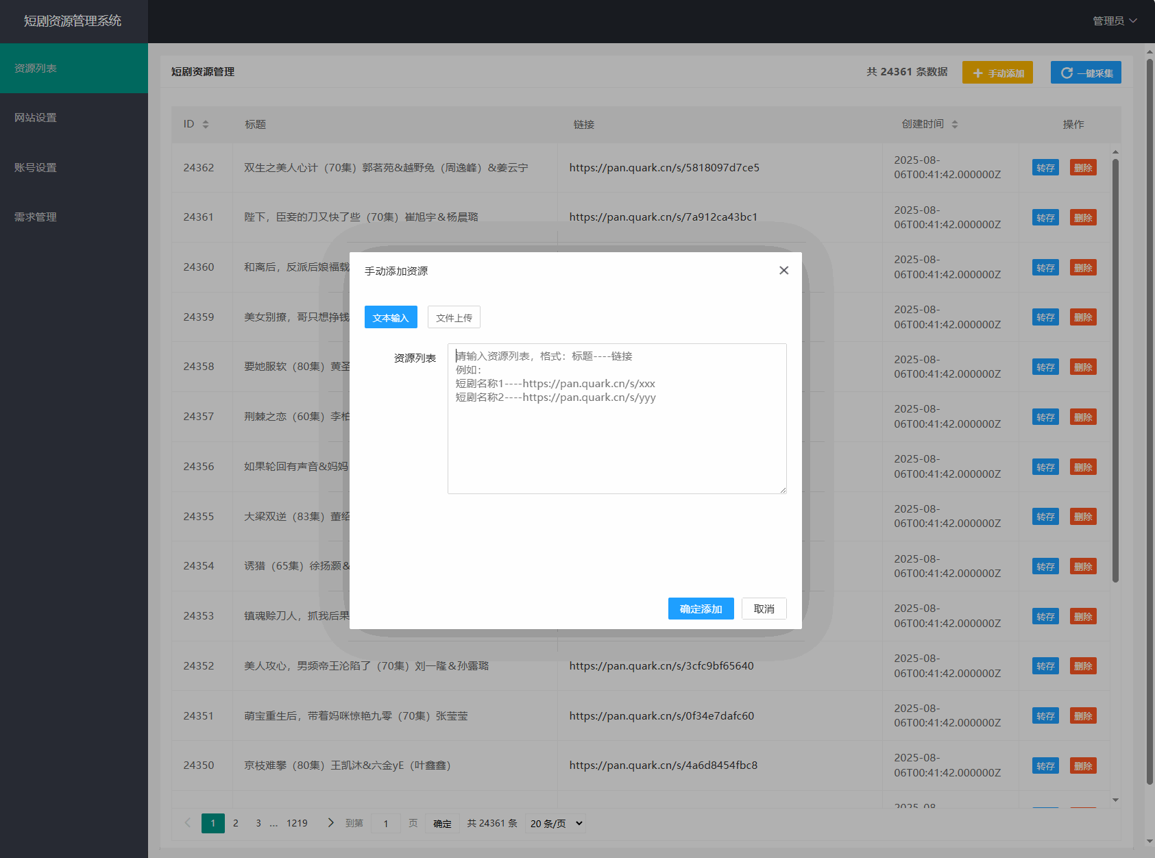 网盘短剧资源转存项目源码 支持夸克 带后台 附教程