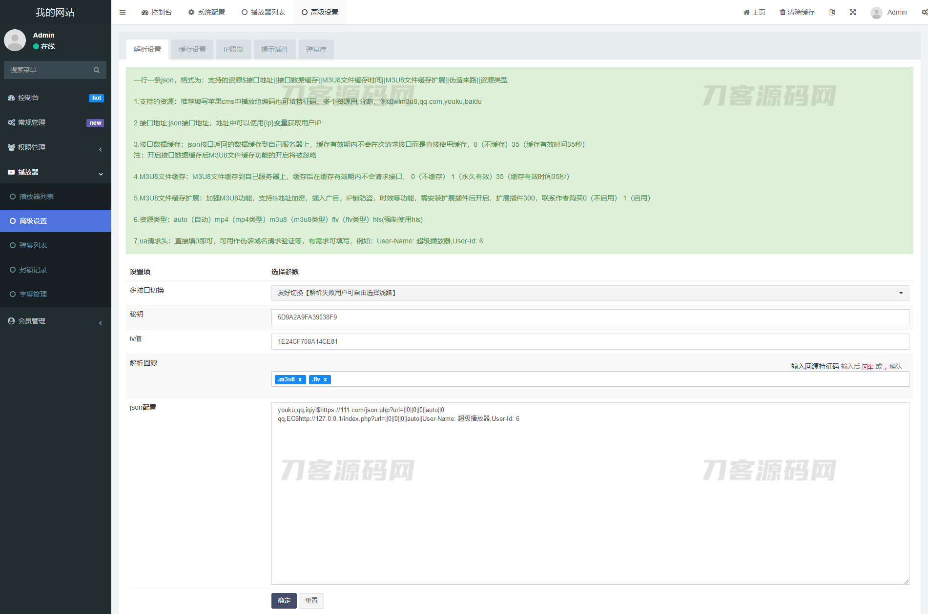 但还需要设置,就是key,iv要与播放器后台-播放器-高级设置里面的保持一致,否则切换选集后播放失败