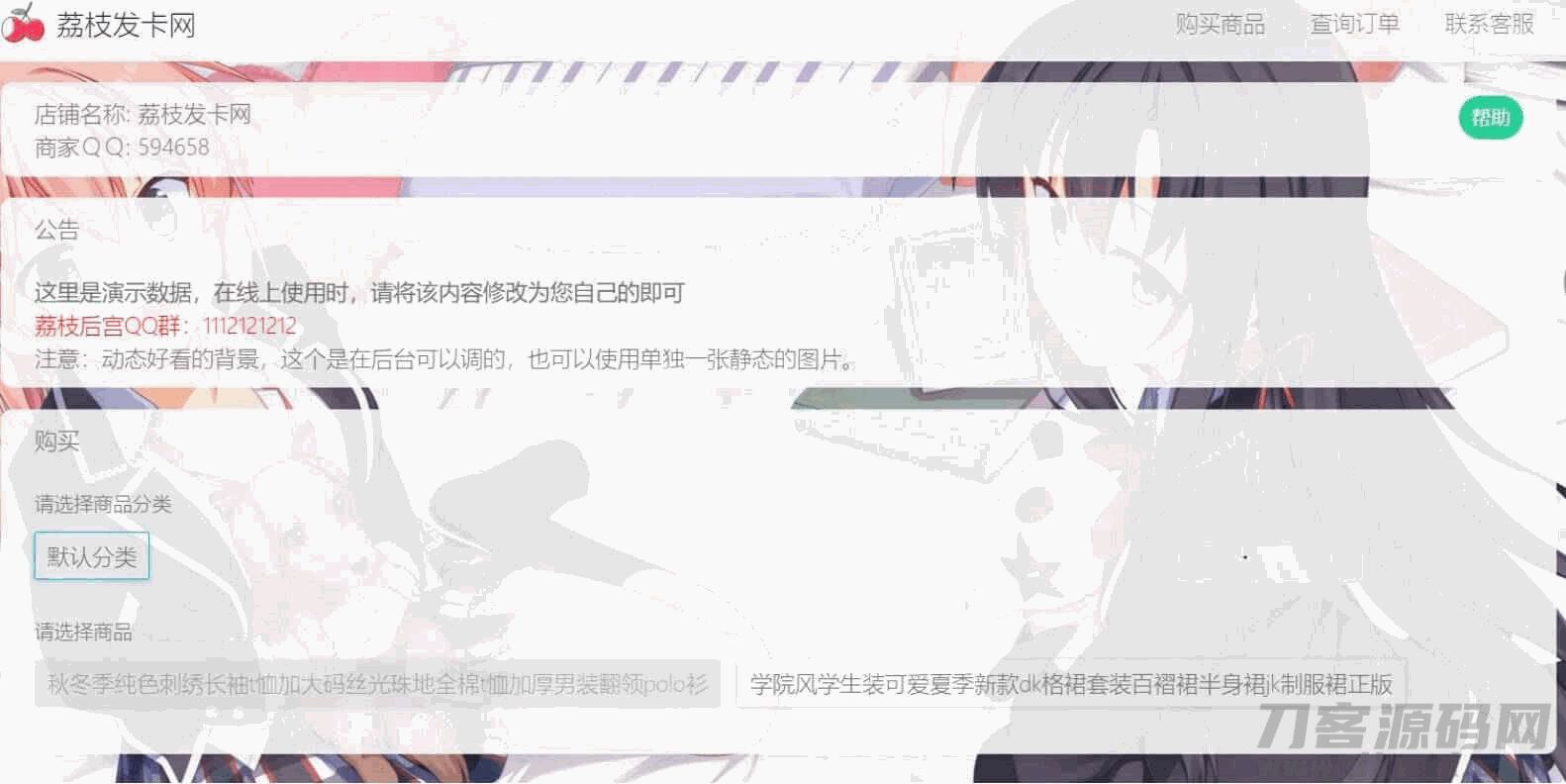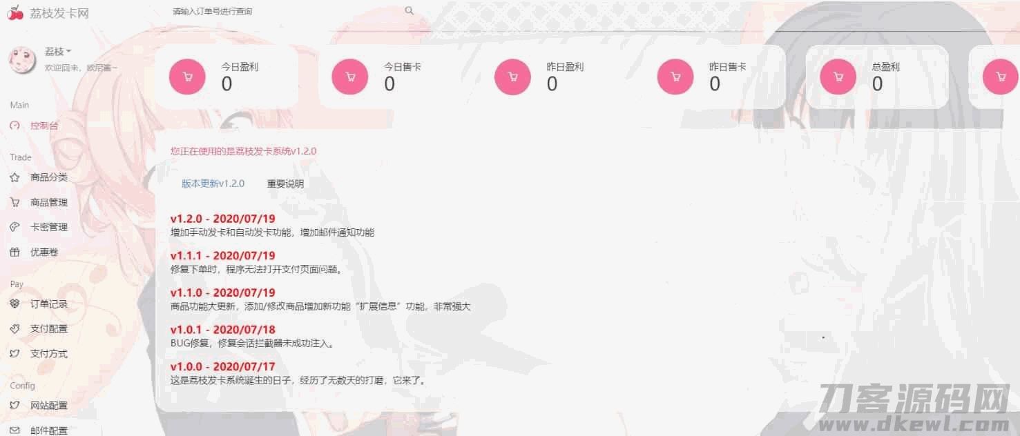 4爷免费源码网 » 荔枝发卡 v2.0/集成当面付+扩展信息功能/发卡系统源码/二次元风格发卡系统php源码