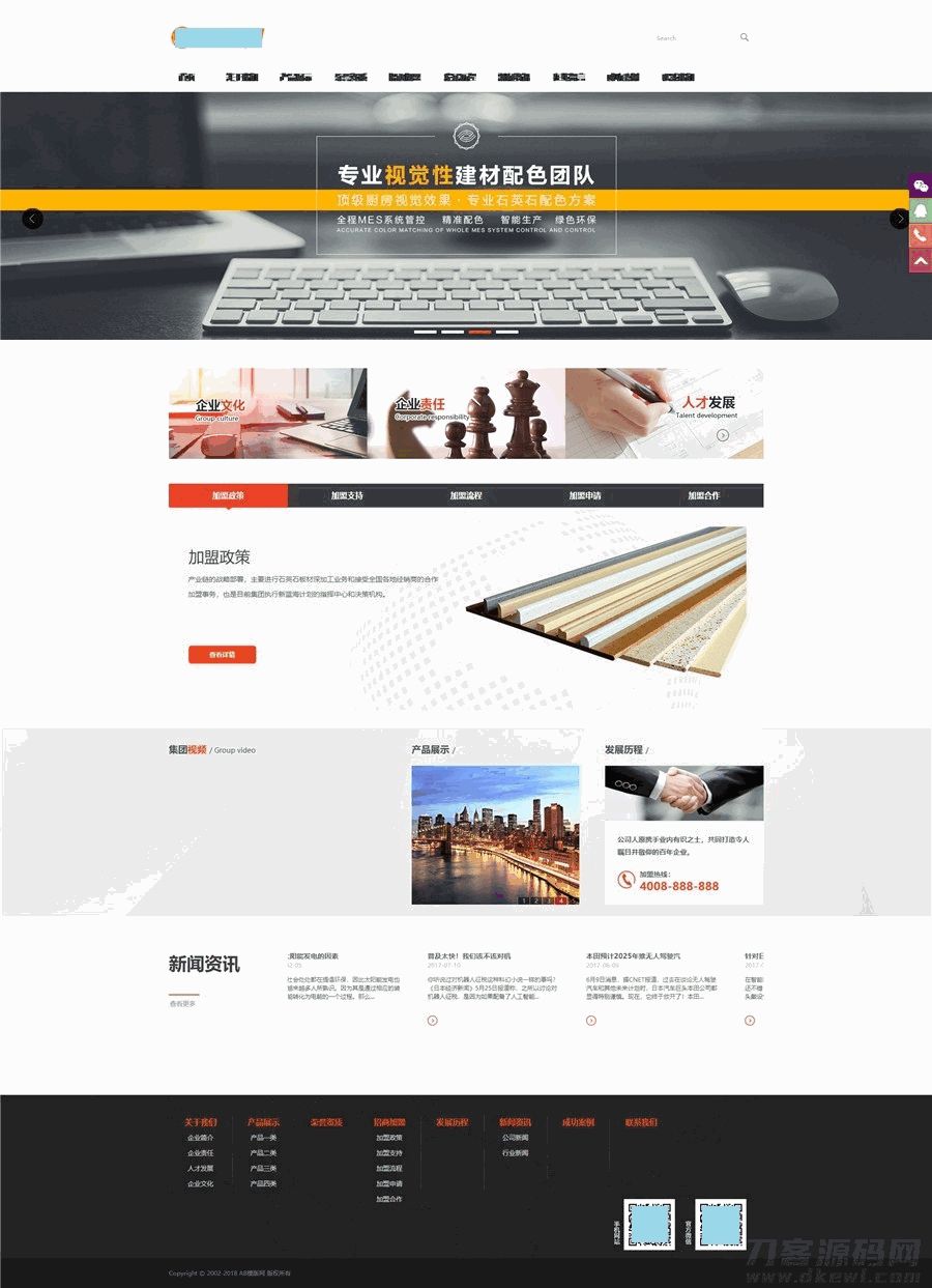 4爷免费源码网 » 装修材料石膏线品牌加盟类织梦模板源码