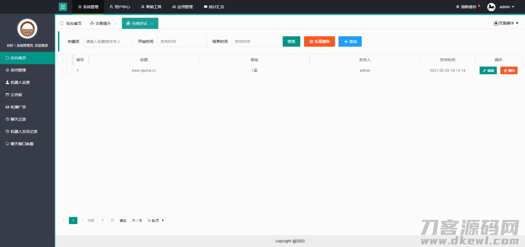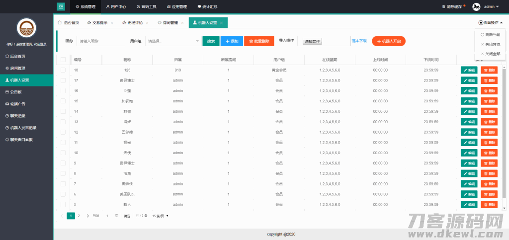 管理员可以在后台设定机器人,前台可以指定机器人讲话和发布广告,增加直播间的气氛,提高直播间的活跃度,让更多游客产生兴趣加入聊天。潜在试用客户进入系统,看到会员列表有很多人,既然有这么多人在跟随这家公司在做,说明公司实力强,服务好,同时机器人的互动功能更强烈的烘托了聊天气氛,此时潜在投资者的从众心理一定是会发挥作用,极大的提高了潜在客户的转化率。