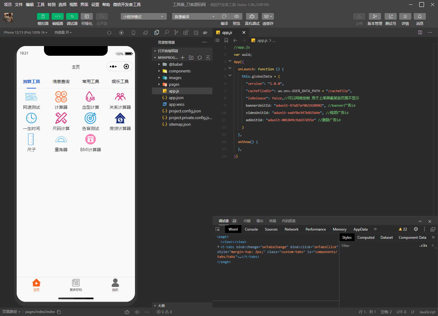 4爷免费源码网 » 超实用的多功能工具箱小程序源码+支持流量主变现