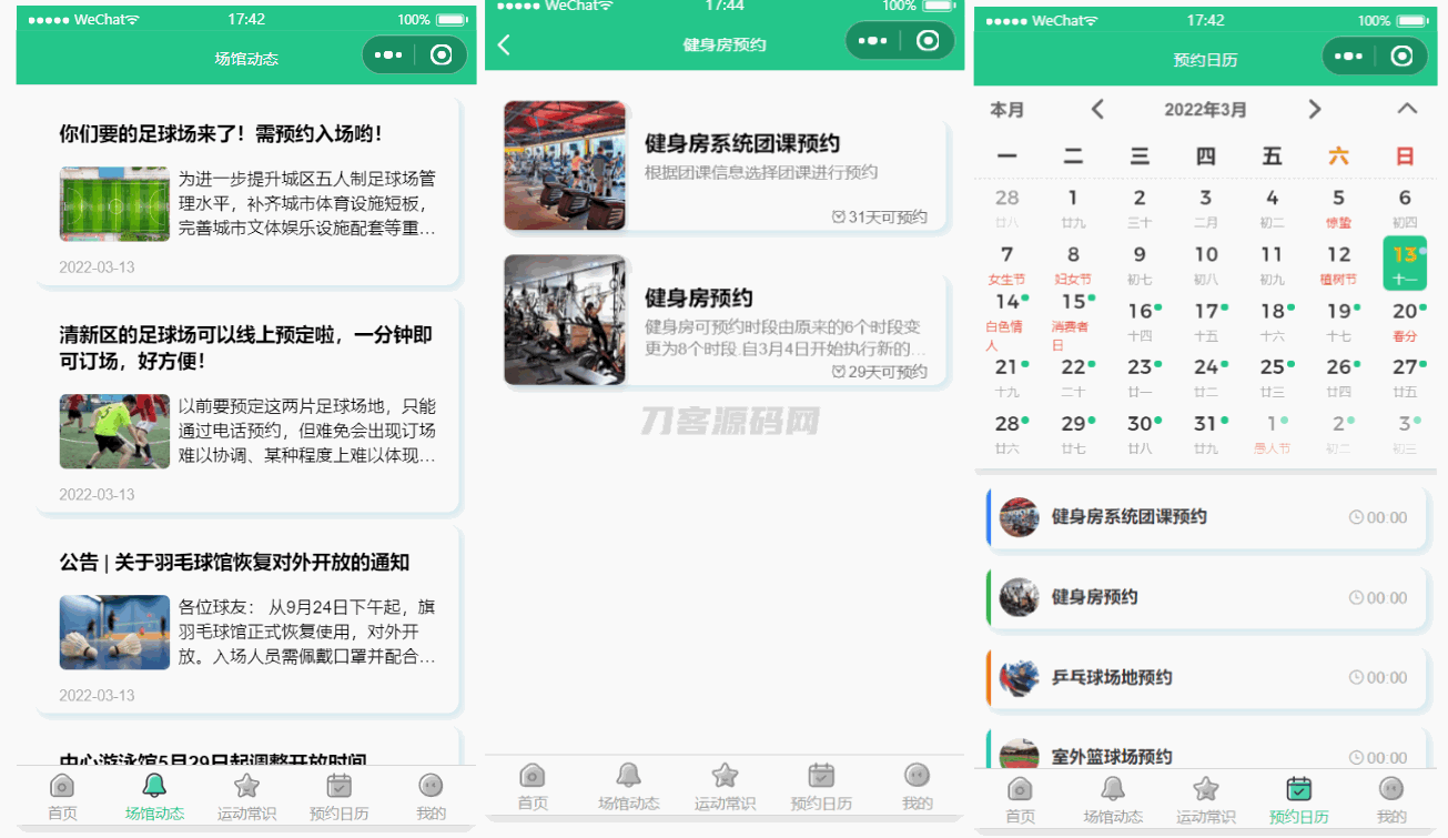 运动场馆预约小程序是一款主要针对城市运动预约的工具类程序, 产品主要服务人群为20-45岁运动爱好者,程序前后端完整代码,包括场馆动态,运动常识,羽毛球场地预约,足球场地预约,篮球场地预约,健身房预约,乒乓球场地预约,游泳场地预约 ,网球场地预约等,可以按照业者的实际情况进行取舍或者增添场馆类型,既适用于大型综合性文体中心,也适合单一性运动场馆(如羽毛球馆,健身房,乒乓球馆等)。 采用腾讯提供的小程序云开发解决方案,无须服务器和域名。