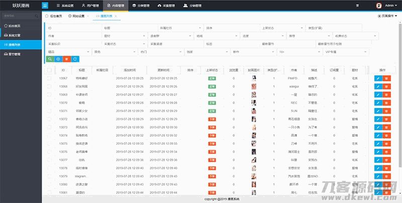 本套程序只含测试数据,不包任何设置,系统内置带小说,漫画采集规则