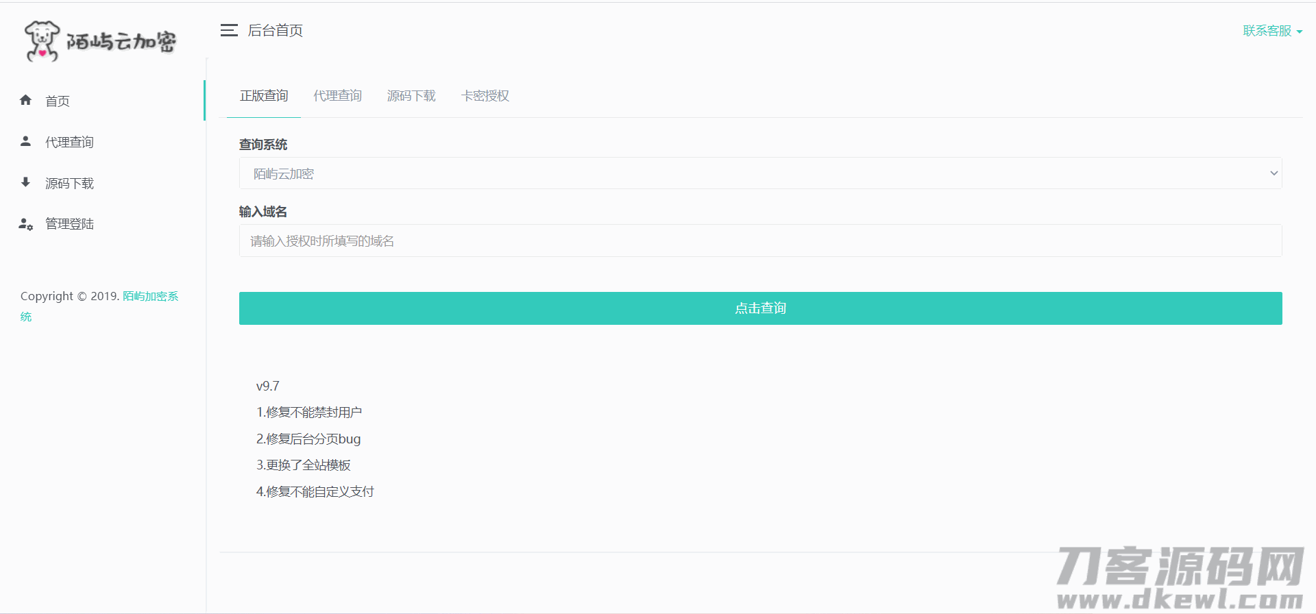4爷免费源码网 » 陌屿授权系统V2.0全解