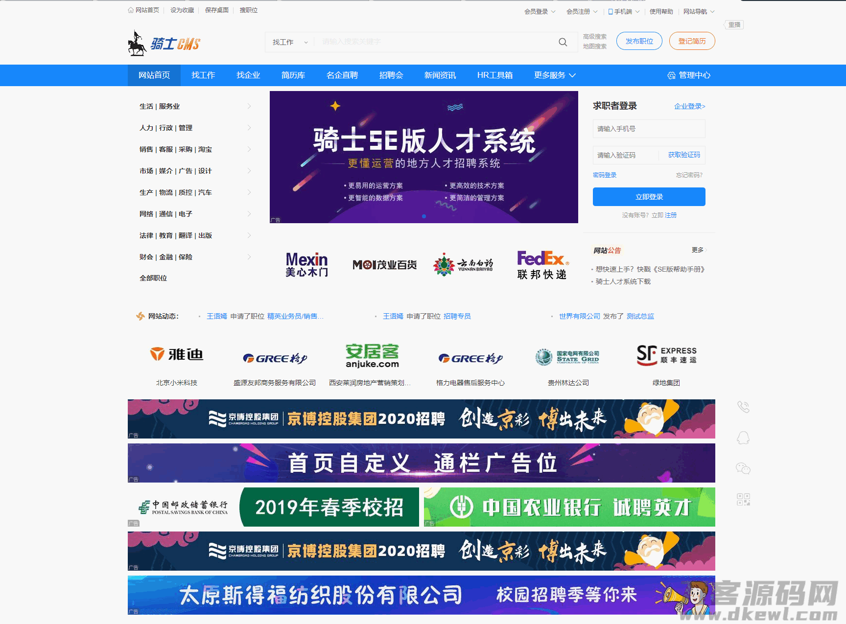 4爷免费源码网 » 骑士人才招聘系统源码SE版 v3.0