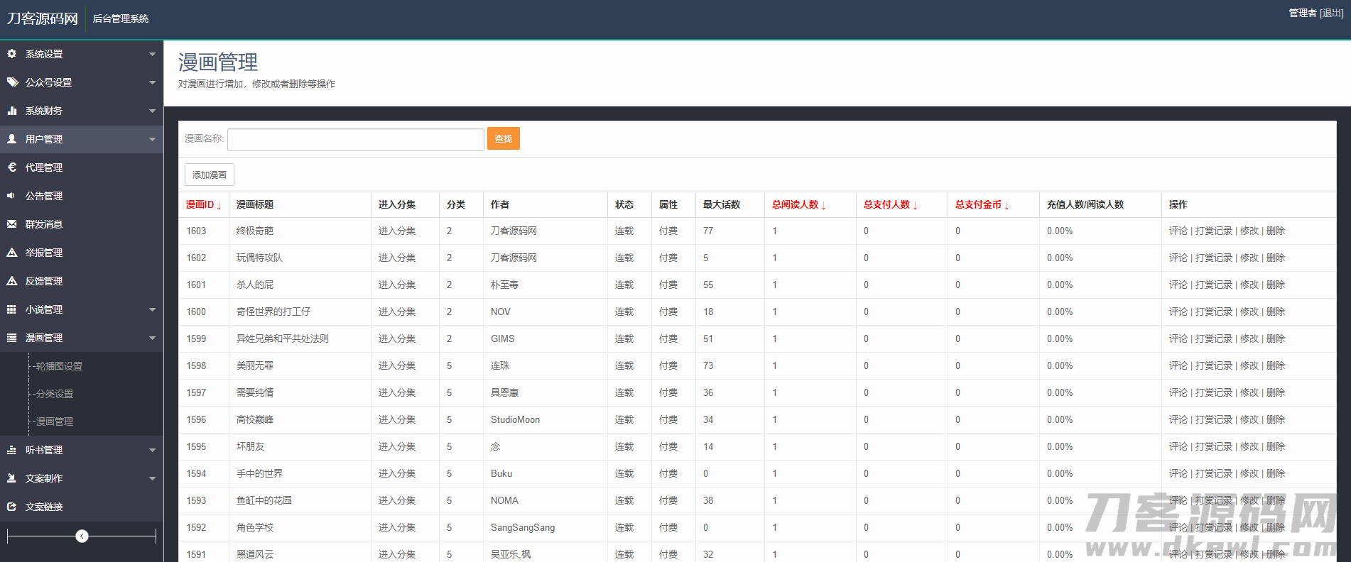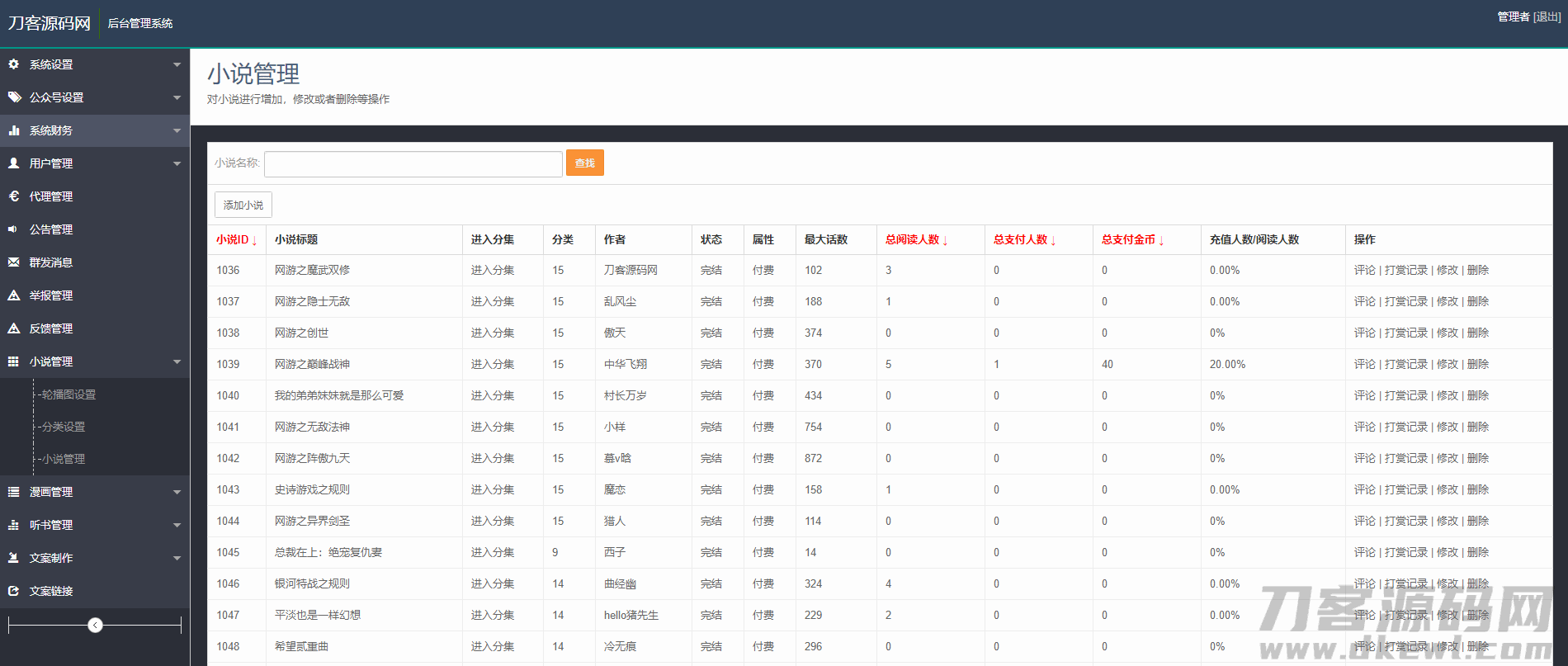 4爷免费源码网 » 2021年最新版小说+漫画+听书+电影多合一功能系统源码!带打赏+试看+代理+第三方支付