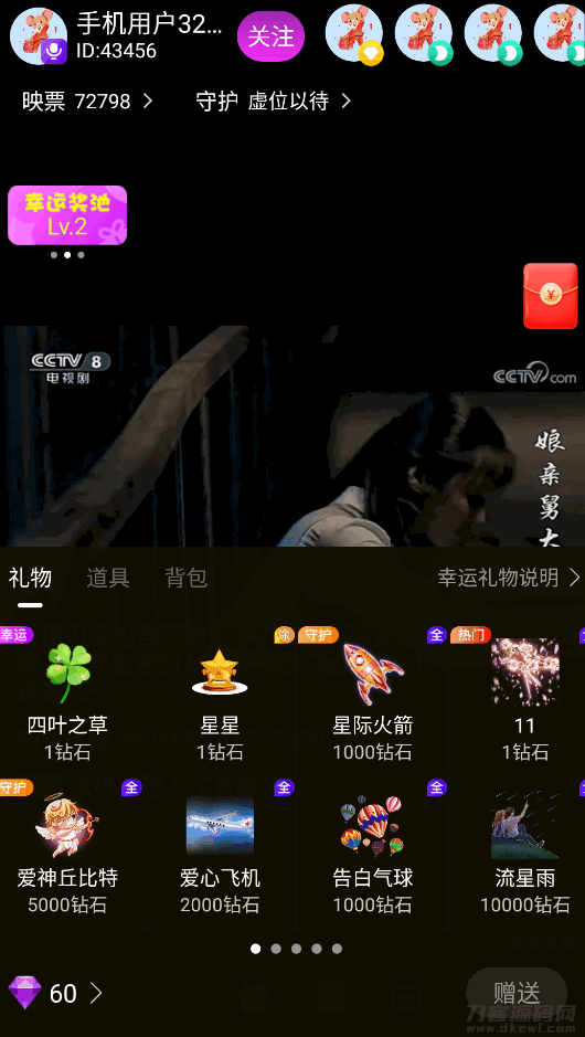 2.开发了设置礼物分成,可设置用户刷多少礼物主播可获得多少收益