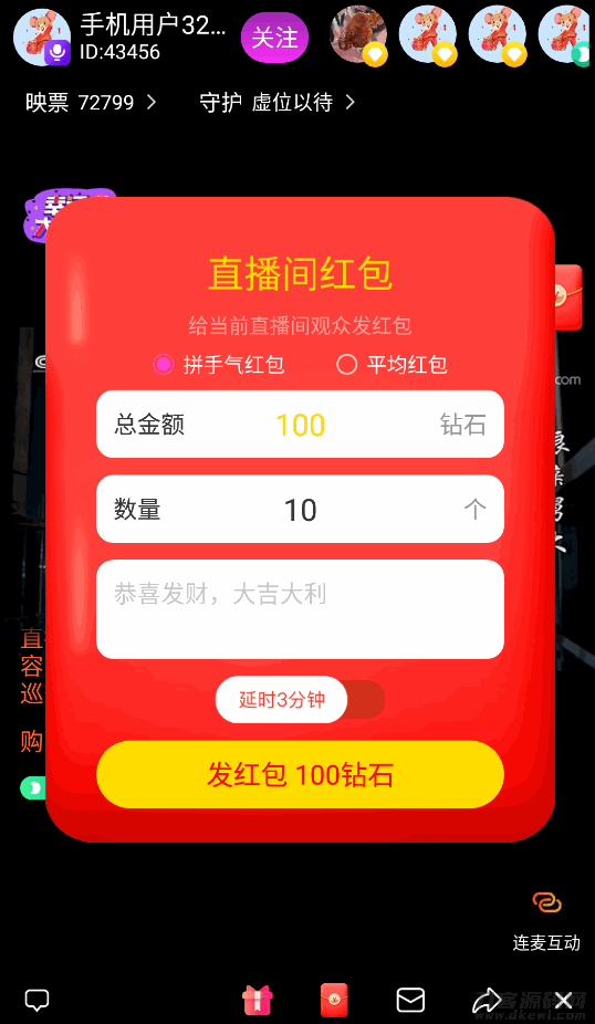 4.每日在线任务,直播间红包,直播连麦,直播pk,会员靓号坐骑