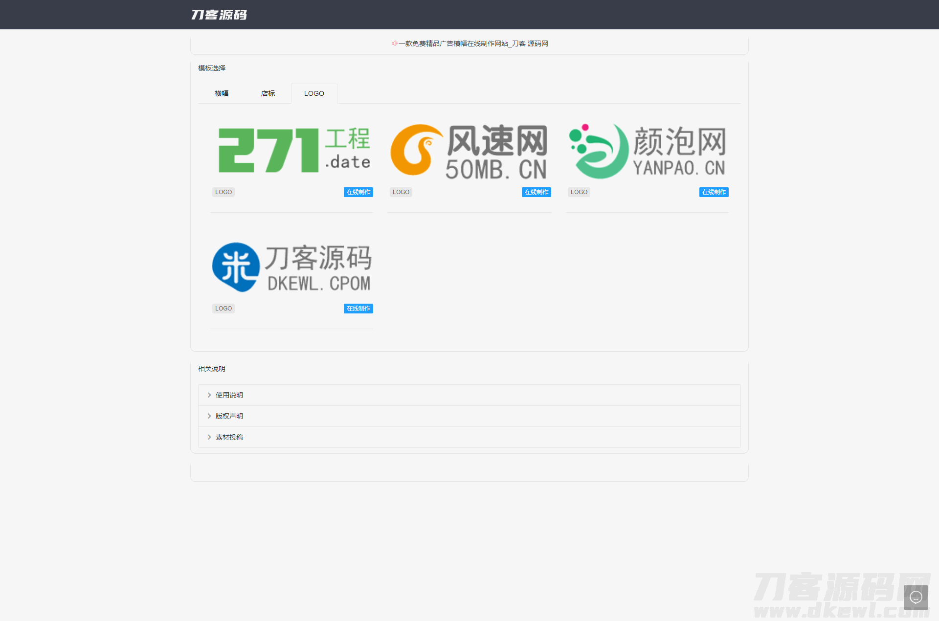 4爷免费源码网 » 2022在线横幅广告_店标_LOGO制作系统最新源码