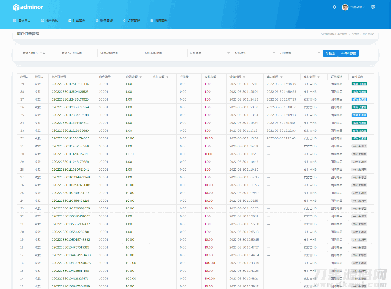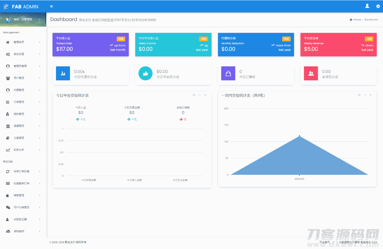 【帐号类型】系统后台多类型管理员、商户代理、普通商户、接口用户;对用的板块后台都不一样相关的数据统计齐全有效。