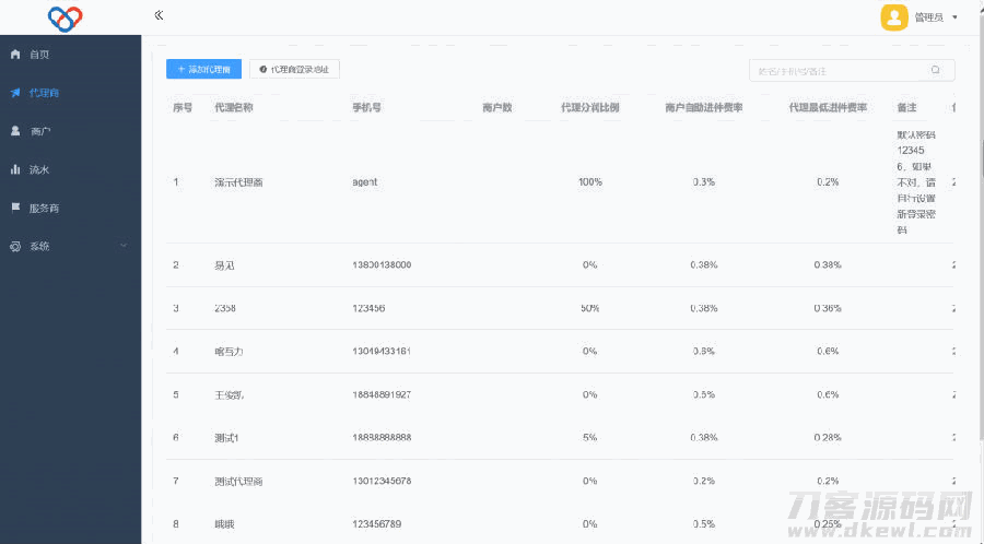 2、代理商->编辑:设置代理商进件费率