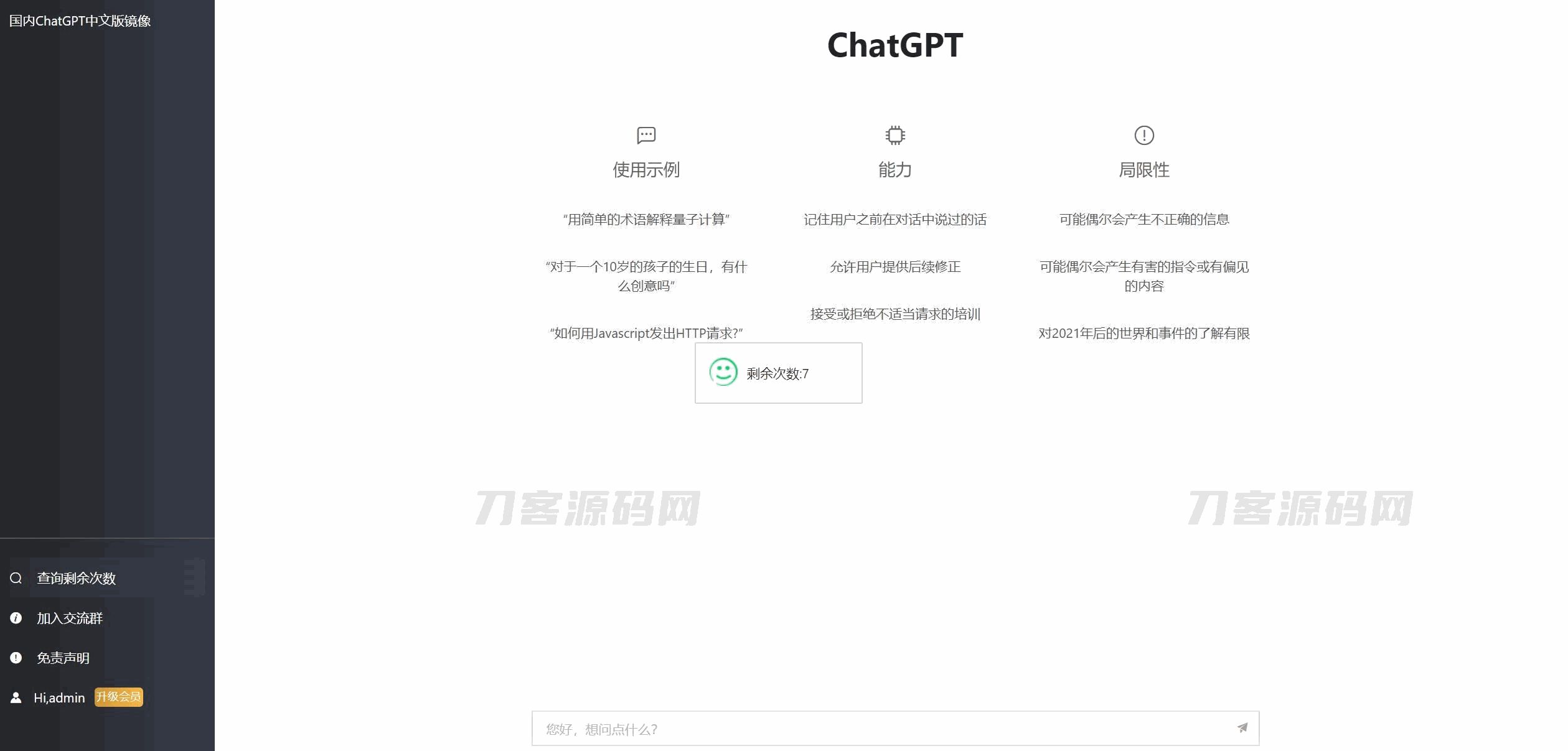 4爷免费源码网 » 2023最新ChatGPT网站源码/支持用户付费套餐+赚取收益