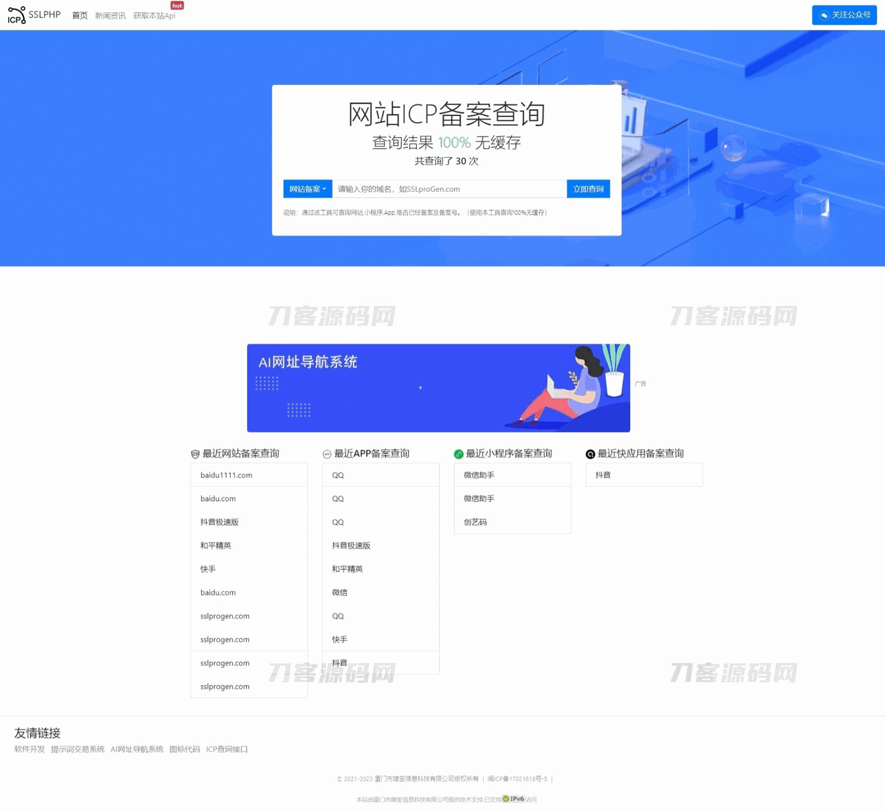 4爷免费源码网 » 2023最新ICP备案查询系统源码 附教程 Thinkphp框架