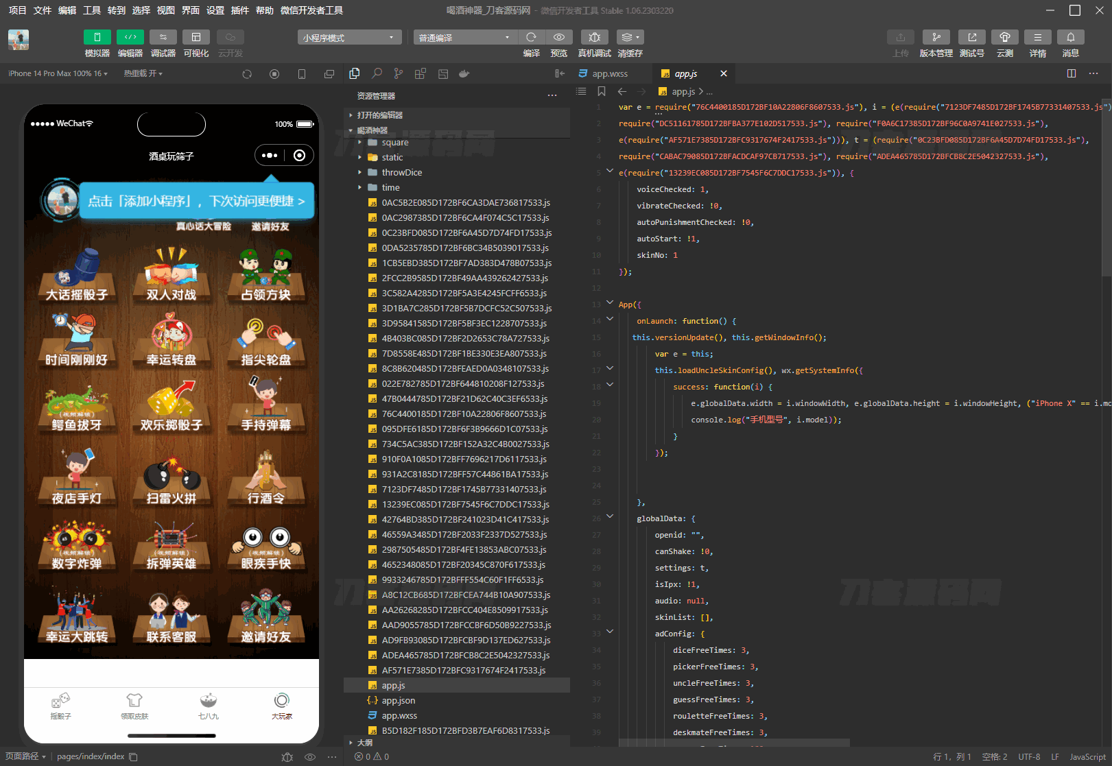 4爷免费源码网 » 2023最新UI酒桌喝酒游戏小程序源码 娱乐小程序源码 带流量主