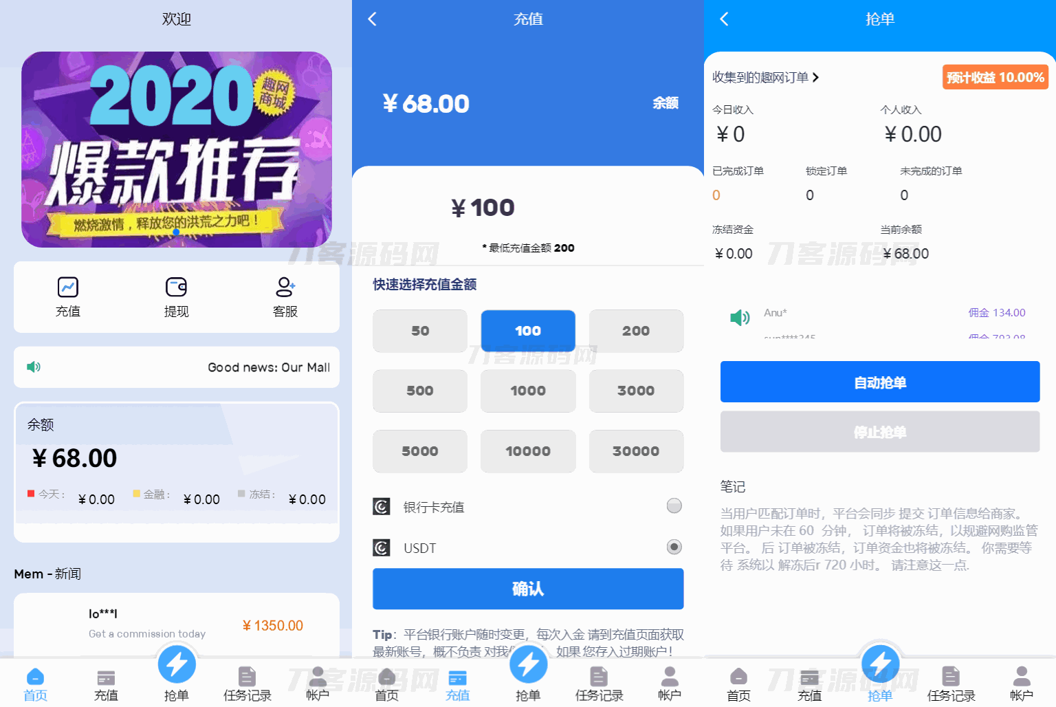 4爷免费源码网 » 2024全新多语言海外抢单刷单系统源码 订单自动匹配 支持分组 代理后台