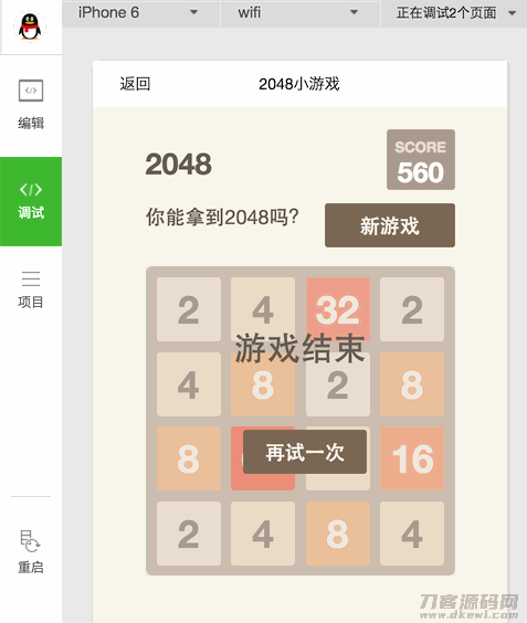 4爷免费源码网 » 2048小游戏微信小程序源码