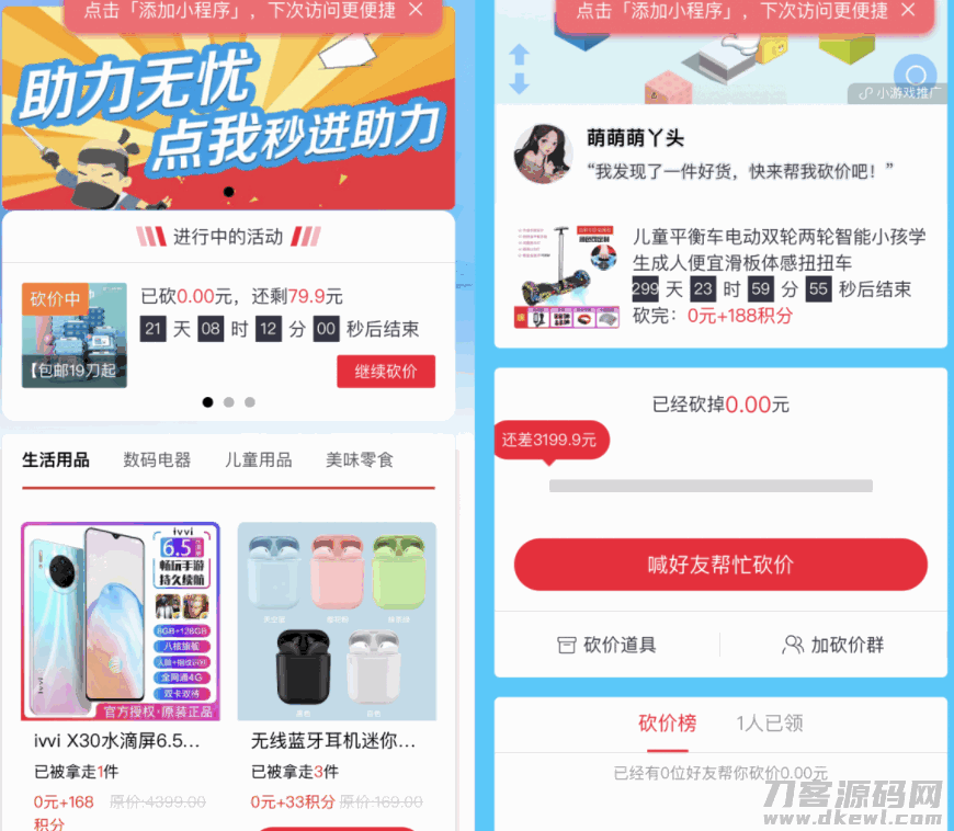 365锦鲤助手 砍价小程序源码 流量主引流裂变