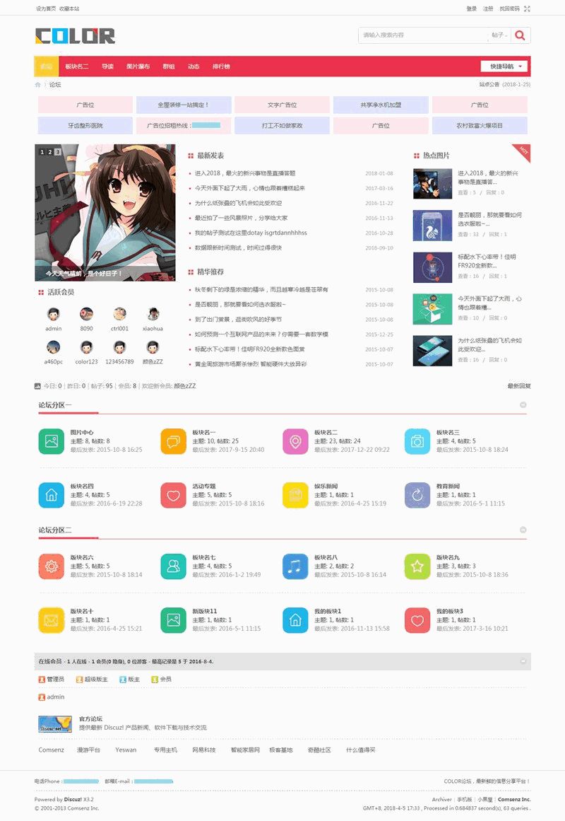 3 模板界面为固定宽度1200px,论坛支持自由切换宽窄屏。