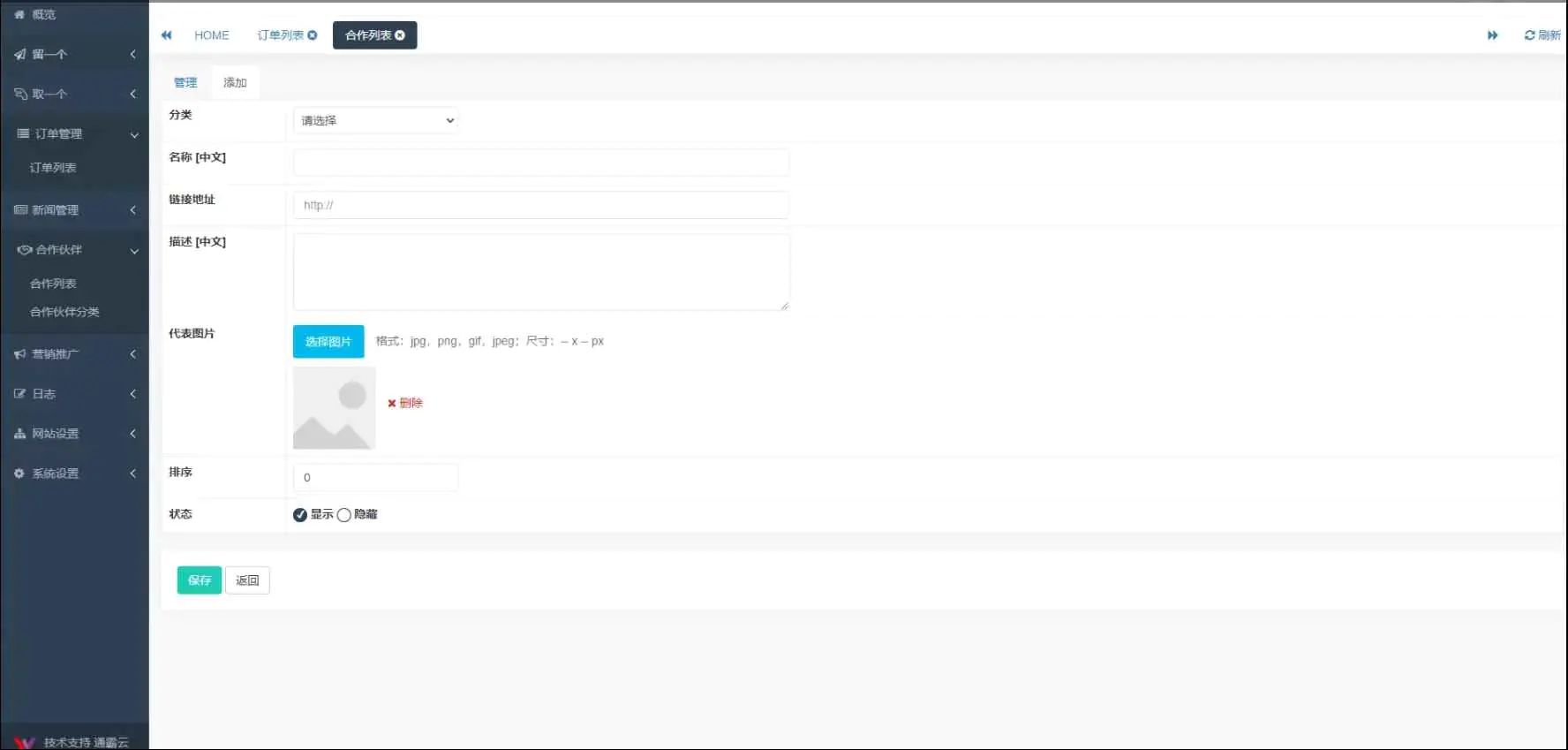 合作伙伴:可以发布/修改/删除合作伙伴信息,在首页底部滚动展示;